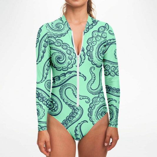 You Know Where to Find Me Octopus Turquoise Bodysuit Long Sleeve One Piece Swimwear