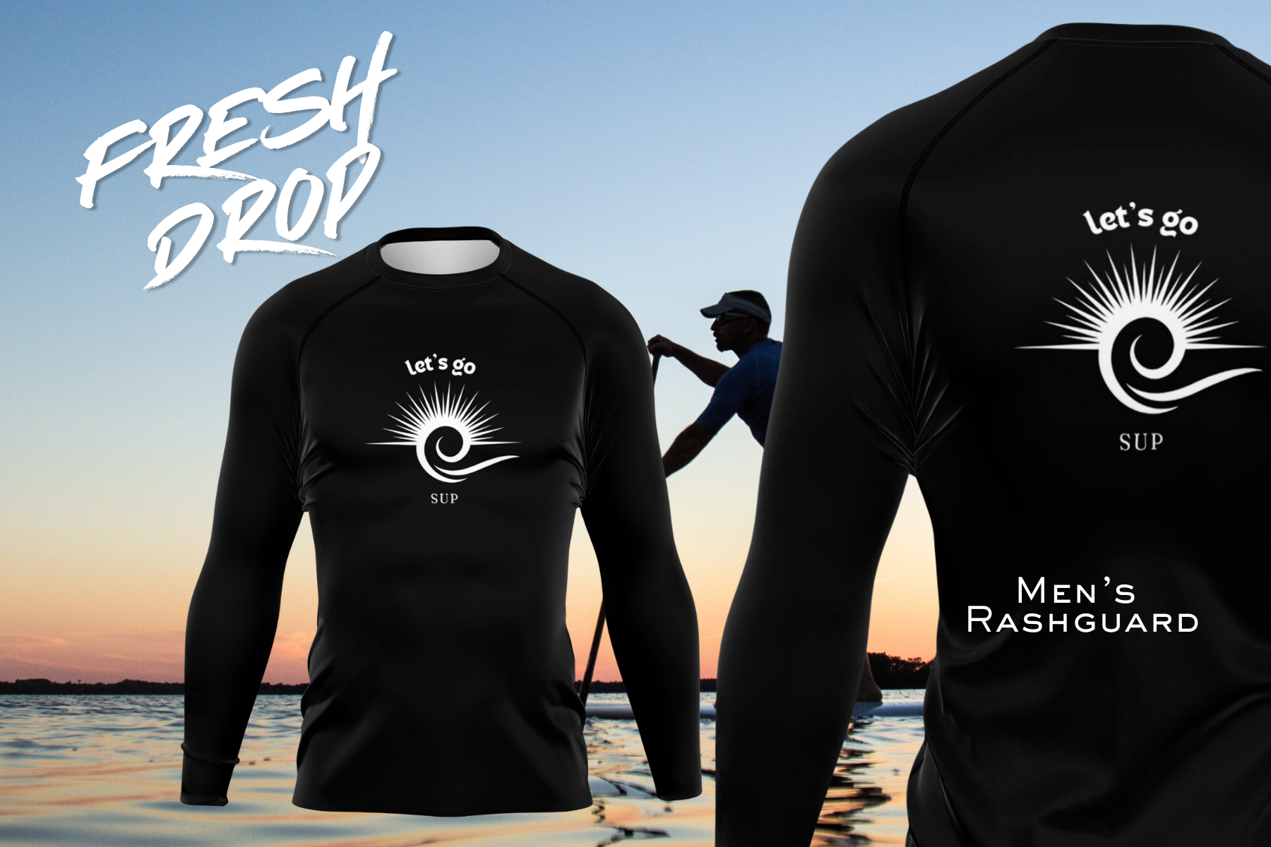 Men's High Performance Black Let's Go SUP Rashguard