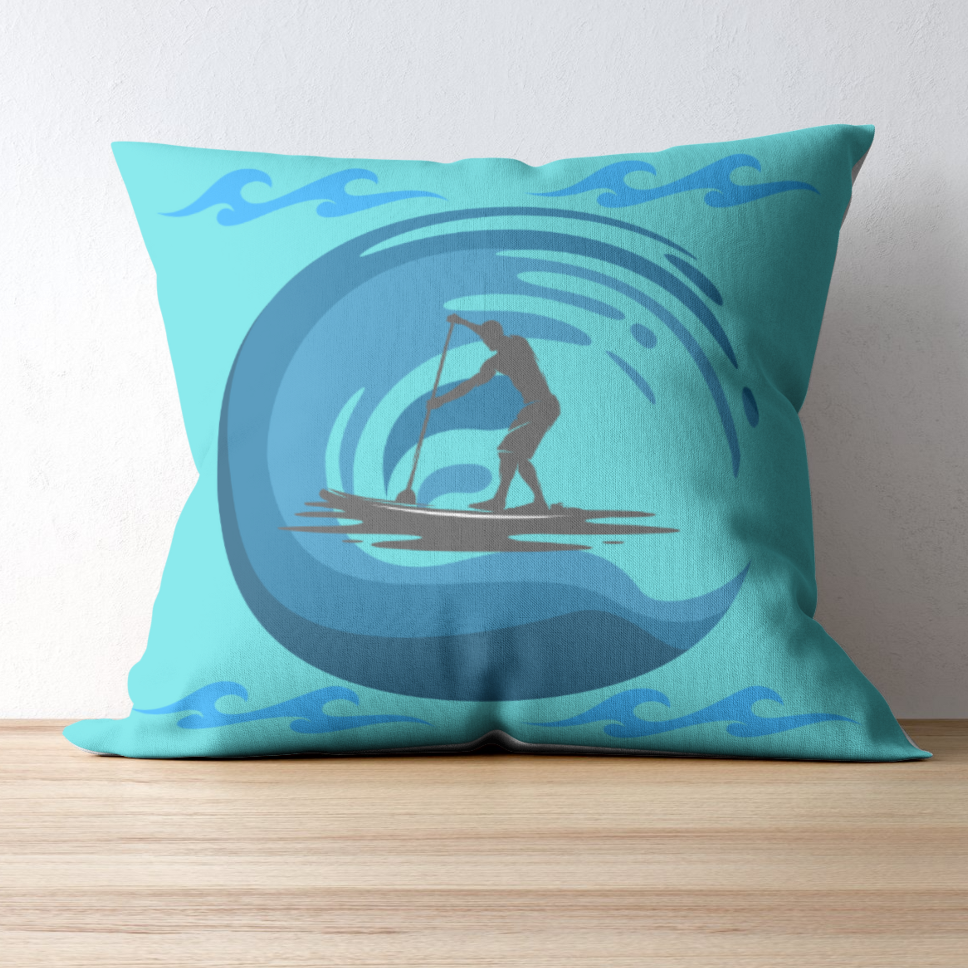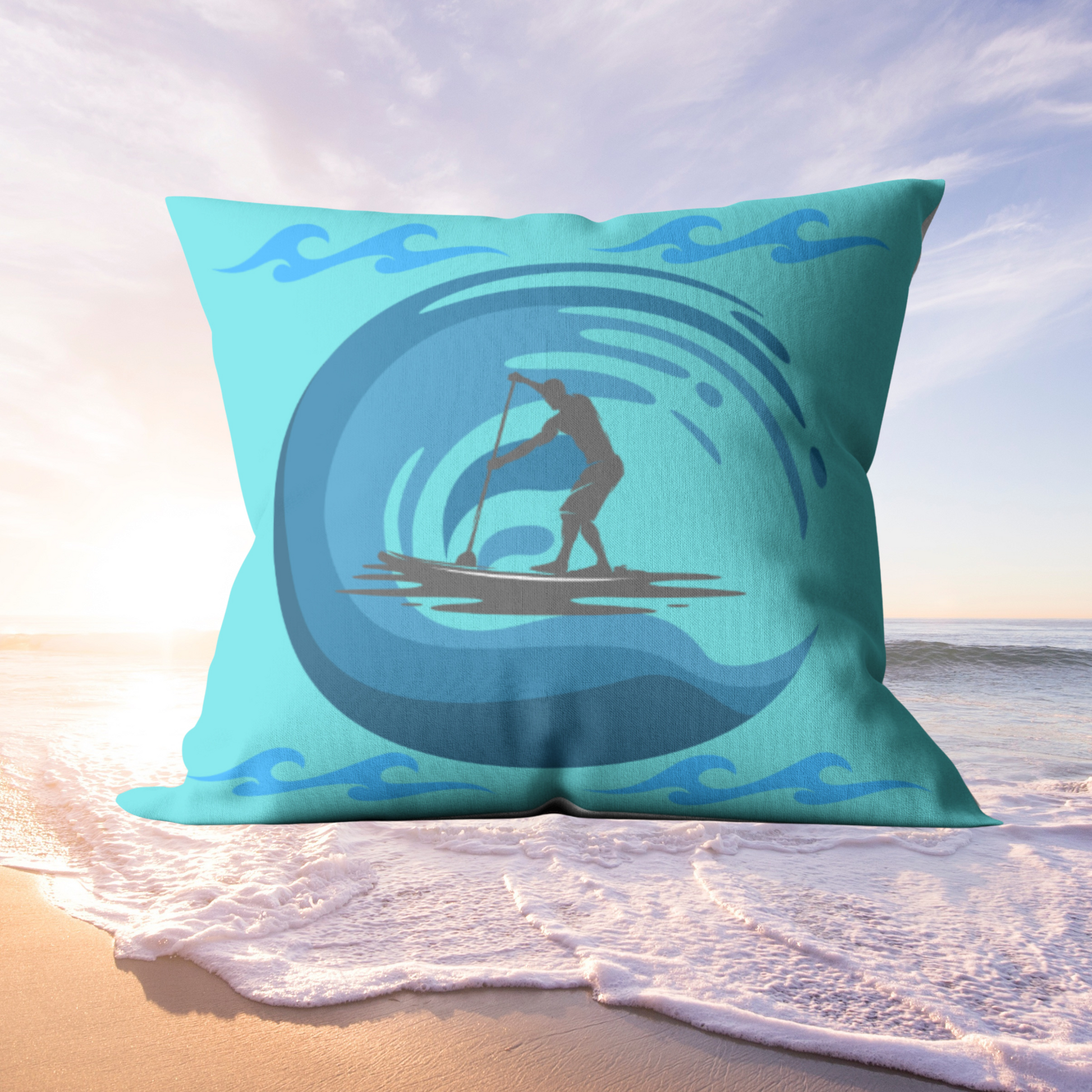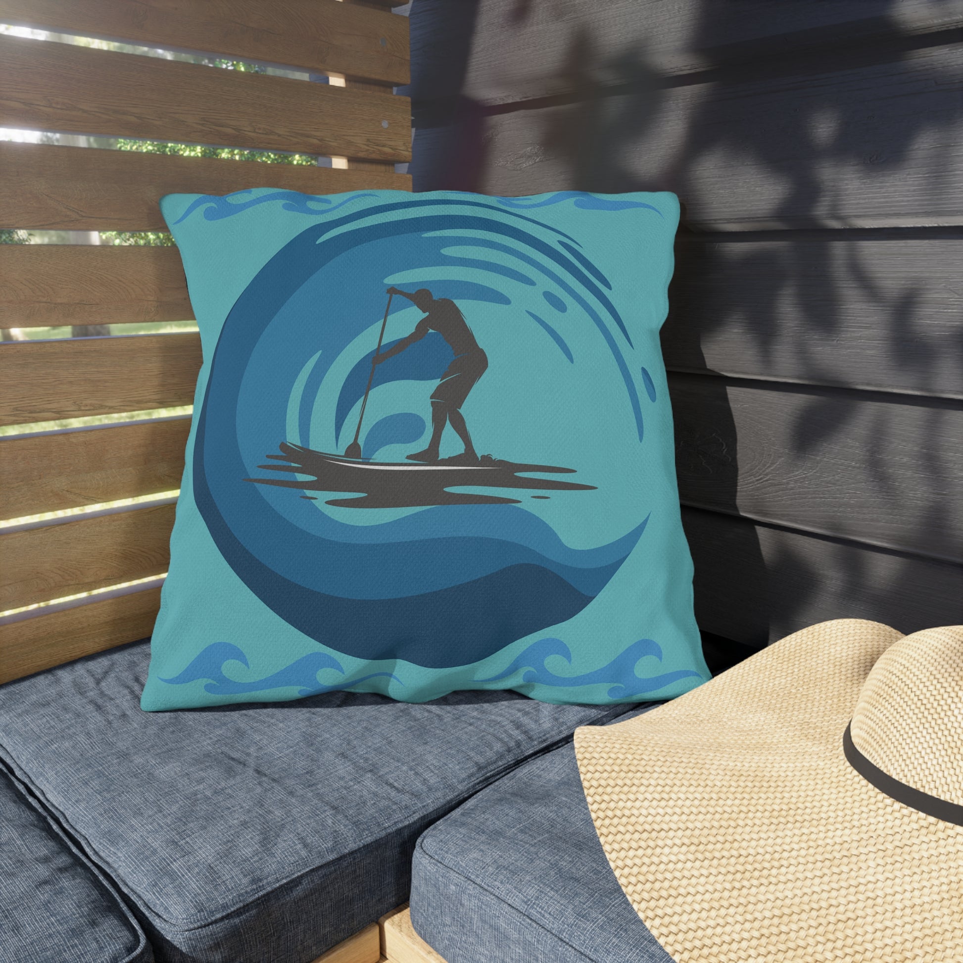 Blue Paddleboarder Outdoor Pillows