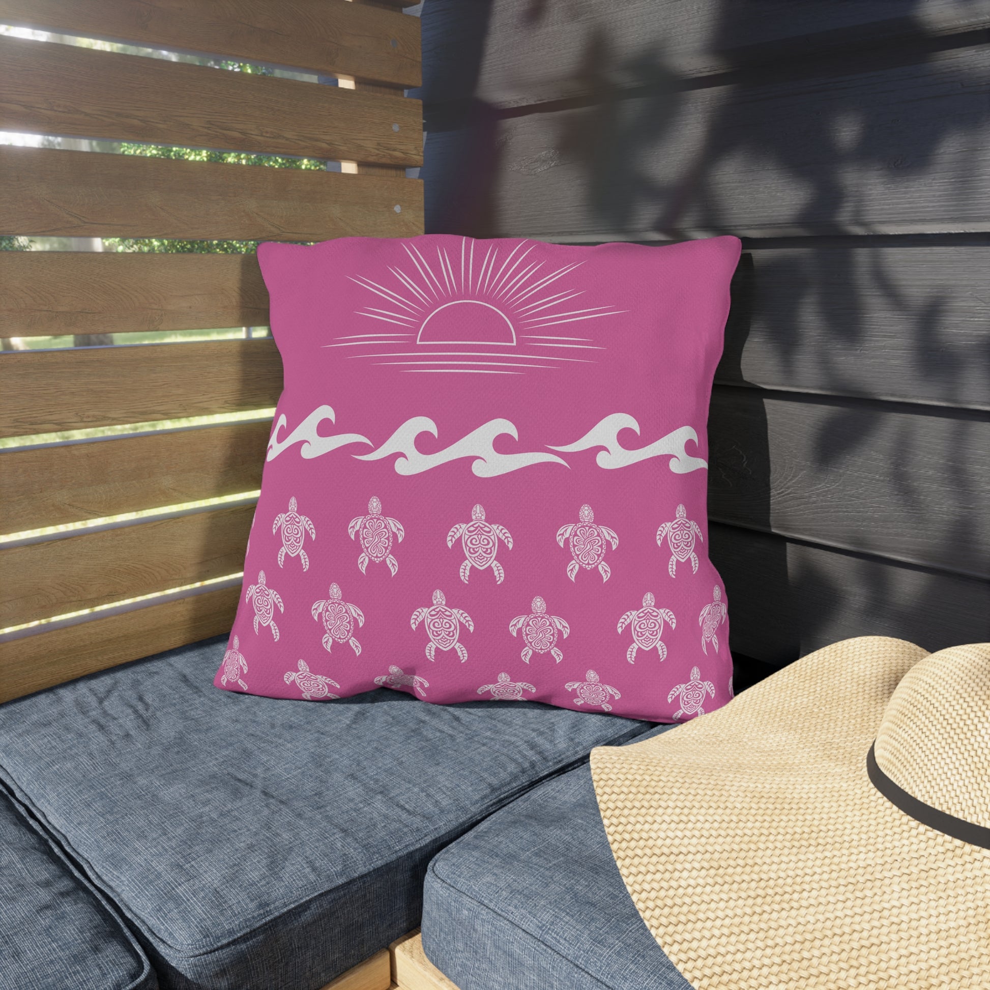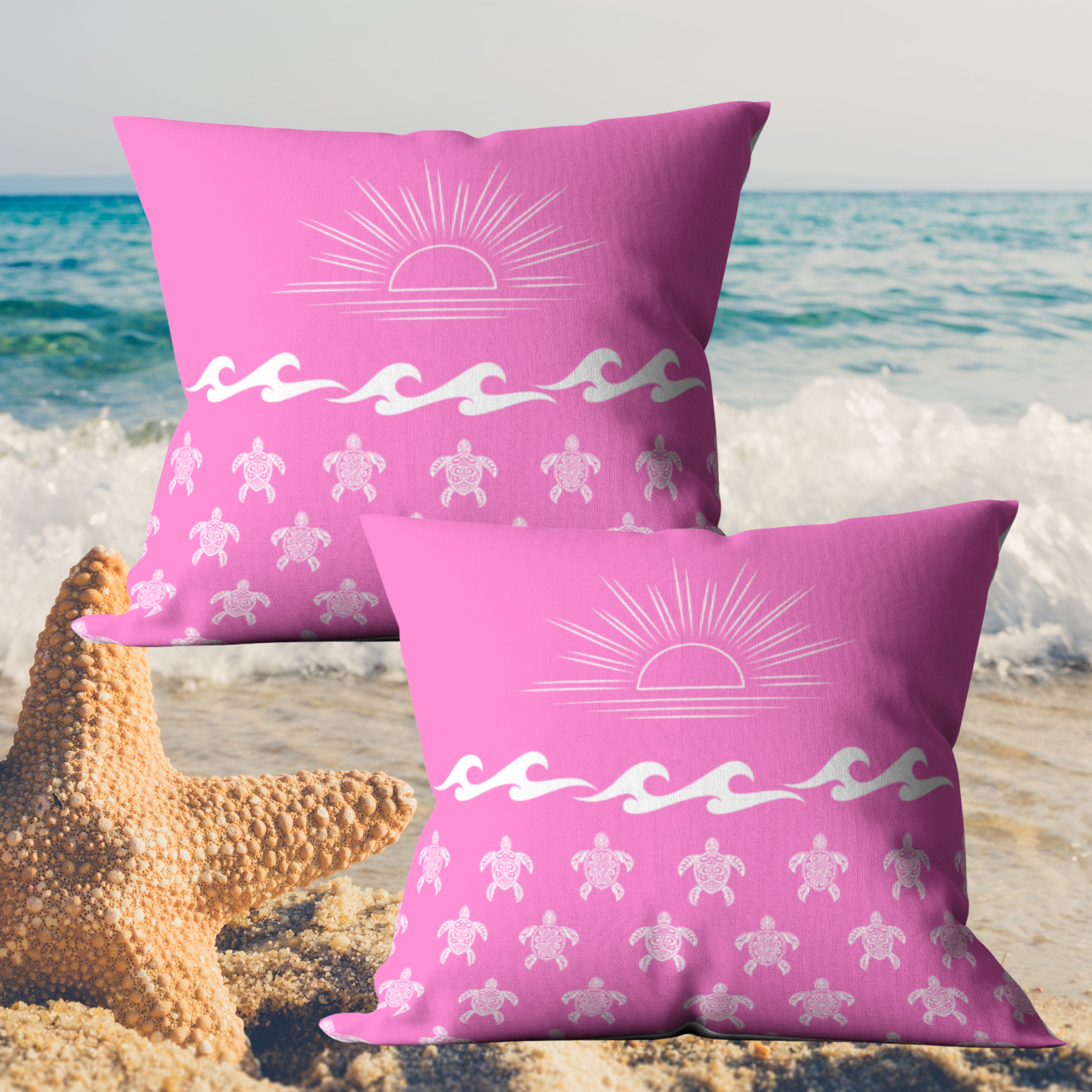 Cheerful and Beach Inspired Violet Turtles and Sun Water and Mildew Resistant Outdoor Pillows
