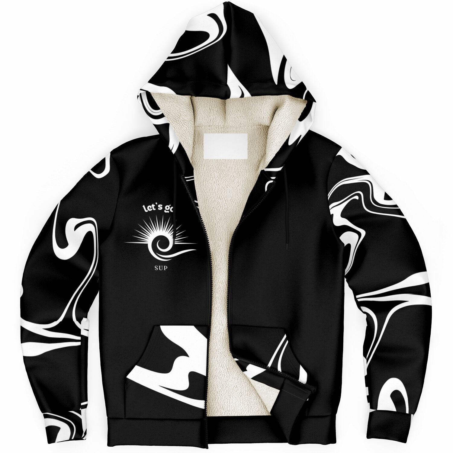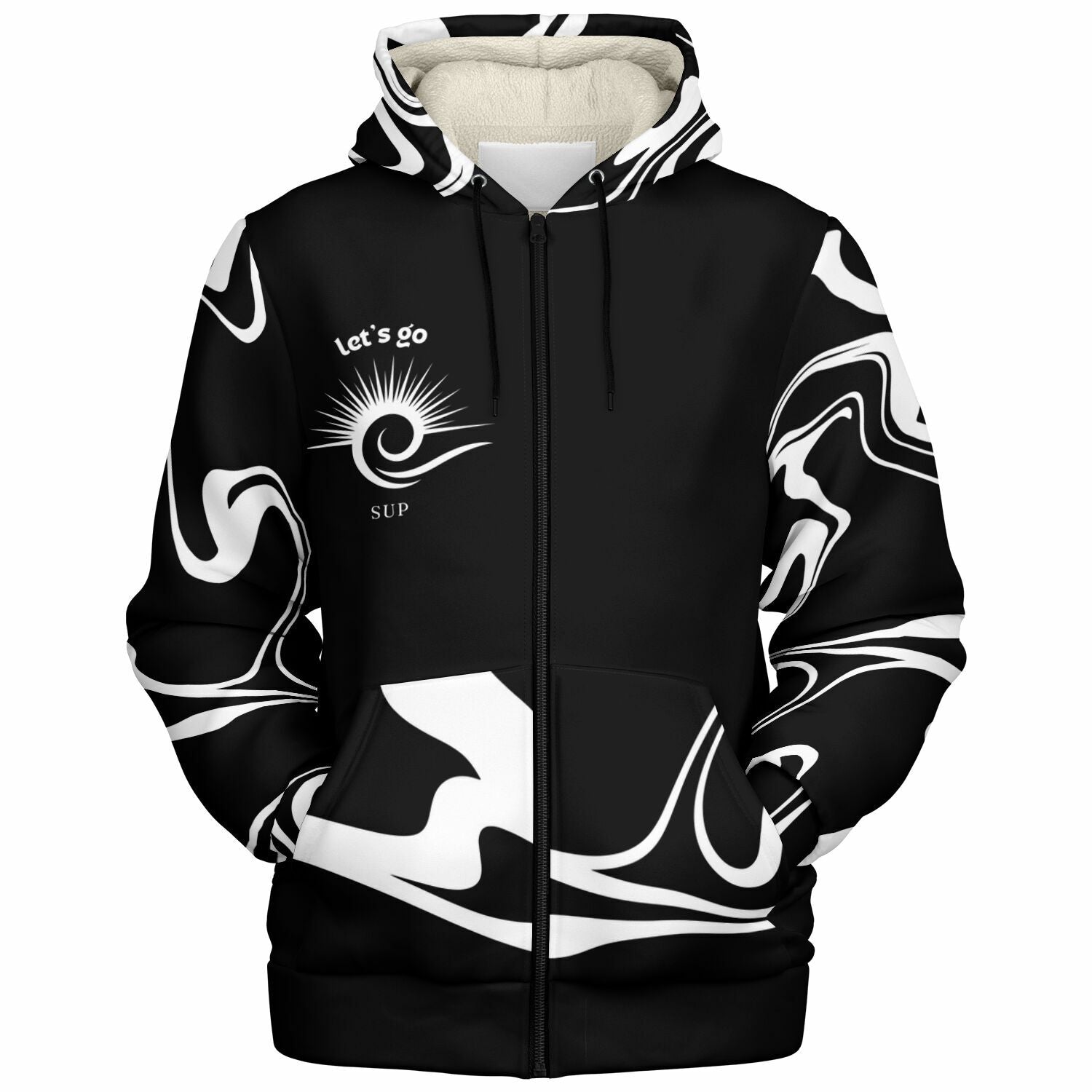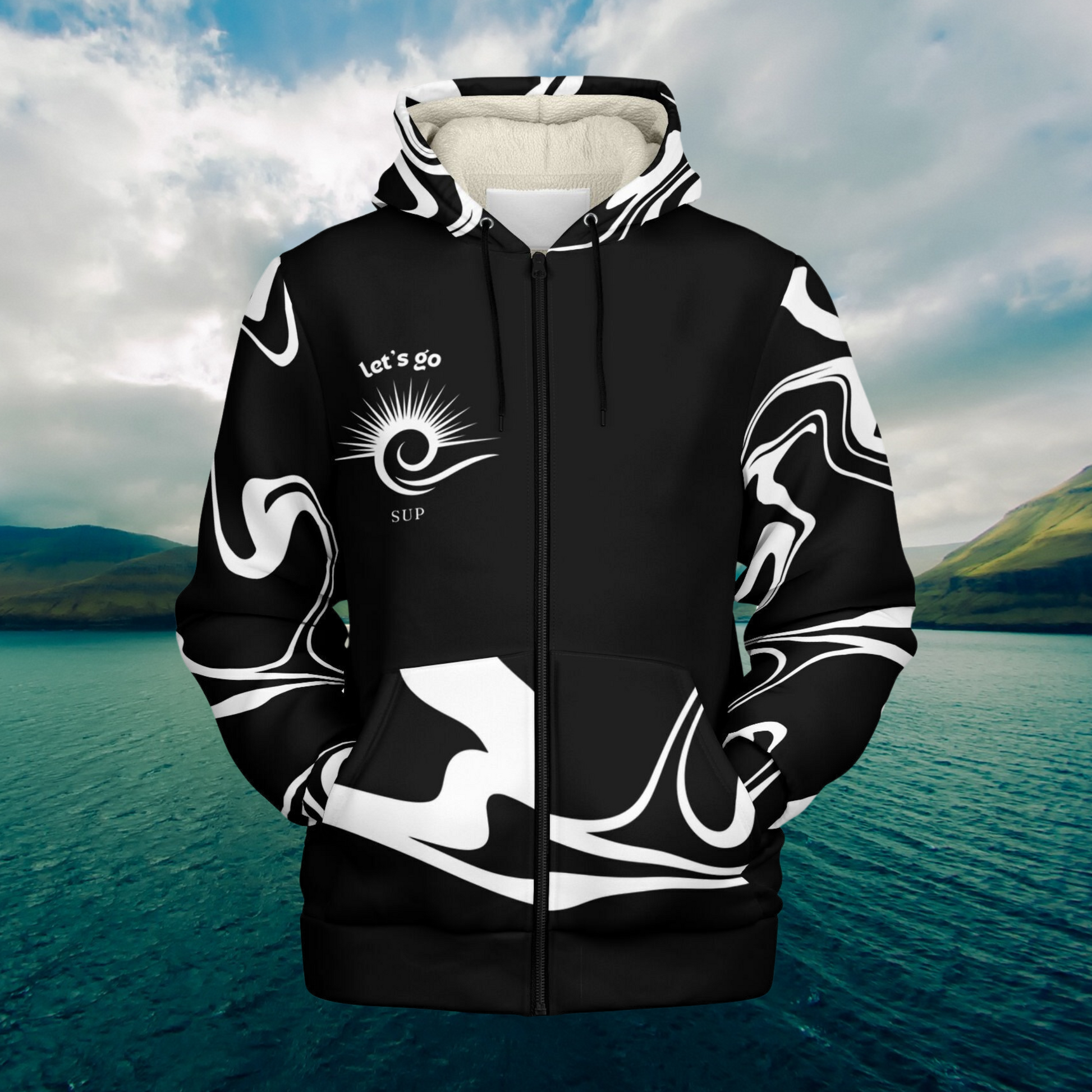 Men's Black and White Let's Go SUP Adventure Paddle Microfleece Ziphoodie