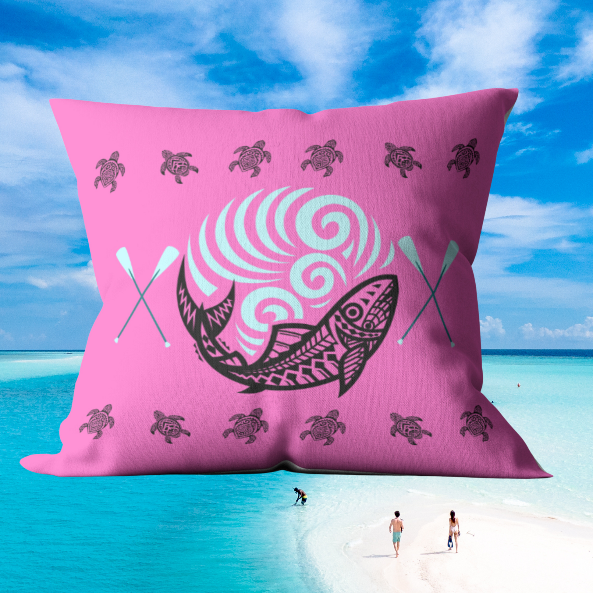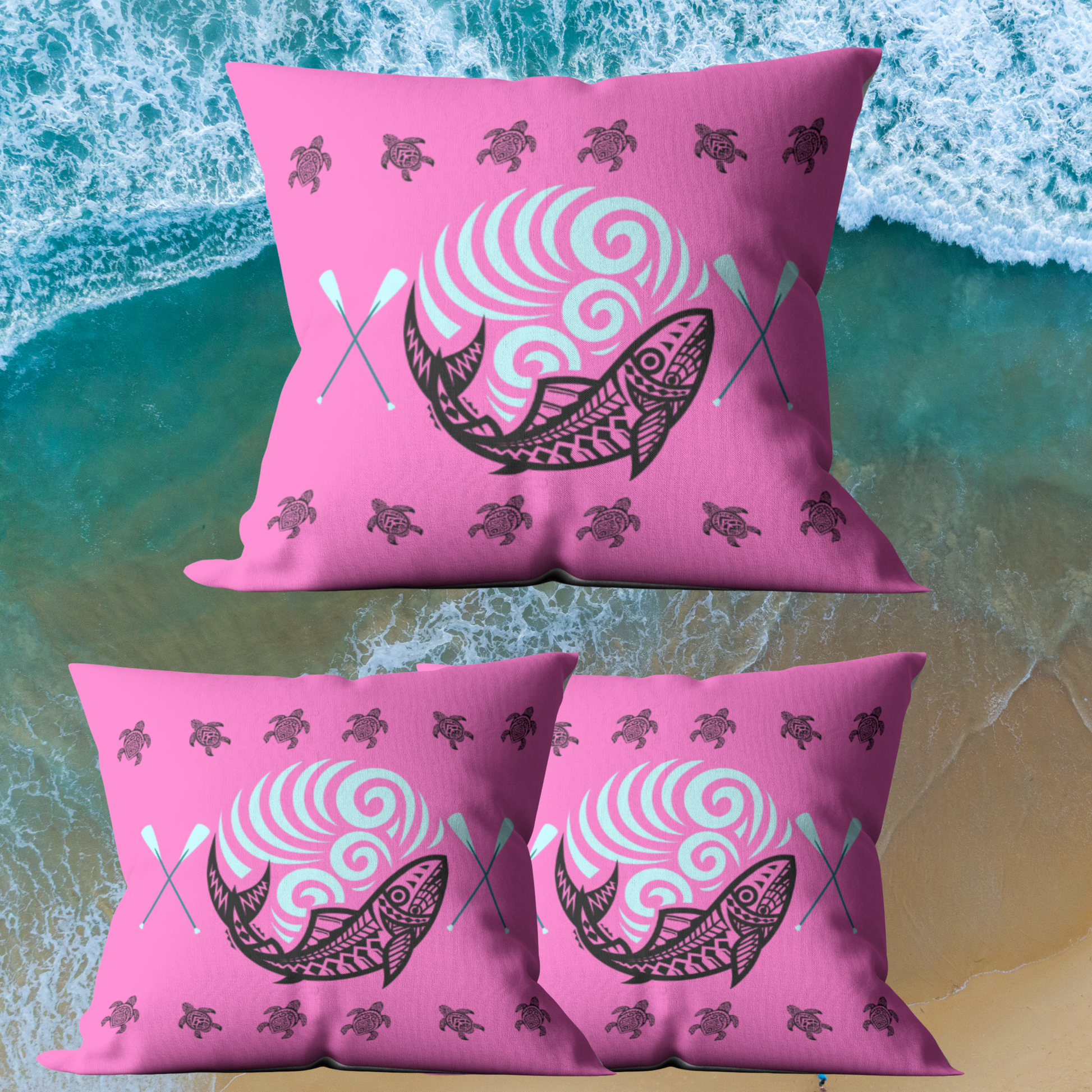 This outdoor pillow features a great color combo and coastal design, perfect for summer vibes! Who doesn’t think of turtles, fish, and water sports when it’s summertime? Add a splash of color to your outdoor space with one or a pair of these cute pillows and see the huge difference they make. Water, mildew, and UV resistant, they’re perfect for relaxing and admiring your space all season long."