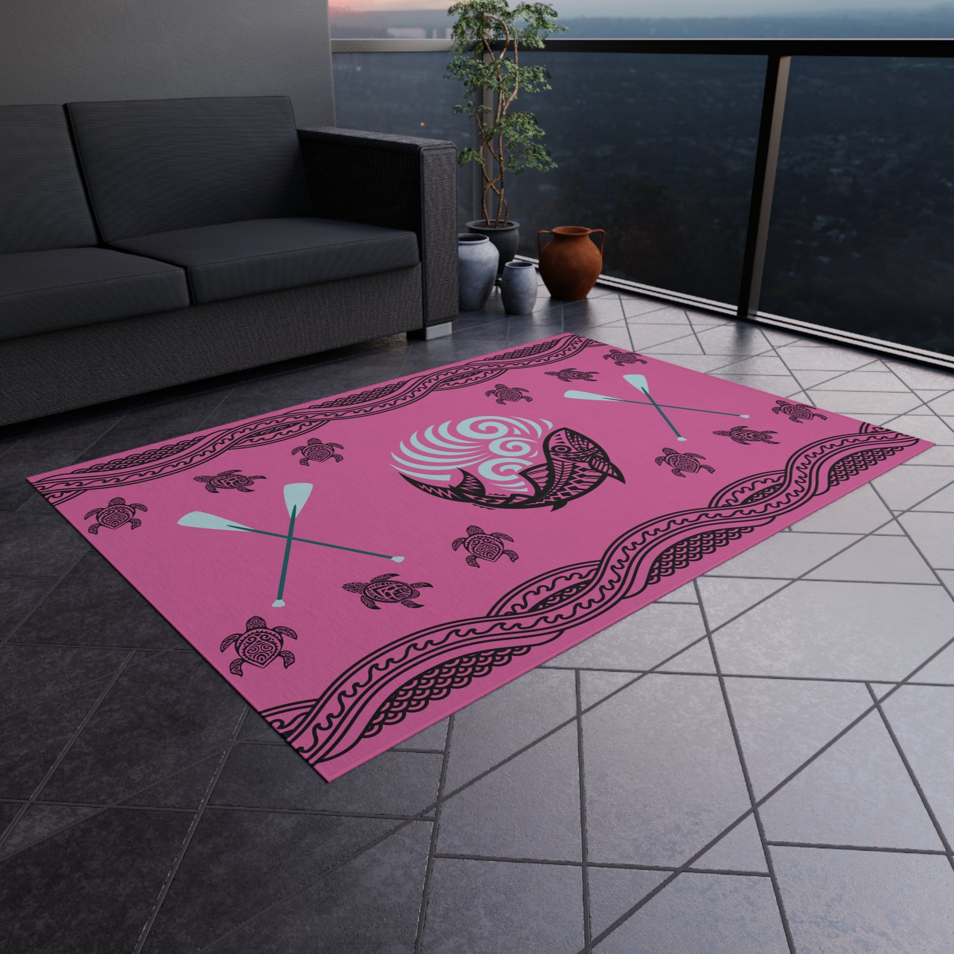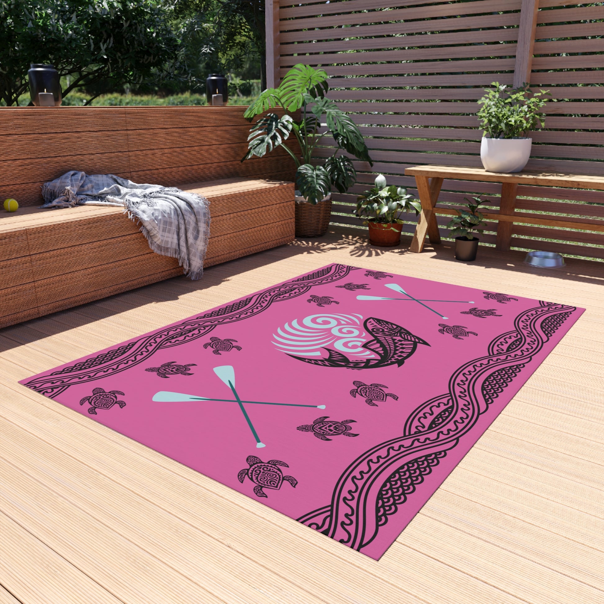Cheer up your outdoor deck, porch or pool area with our colorful outdoor rug. This durable and breathable rug will add a touch of elegance, but functionality as well, since it dries quickly. Coastal design and paddle elements are an absolute must to show off the joy of summer fun.