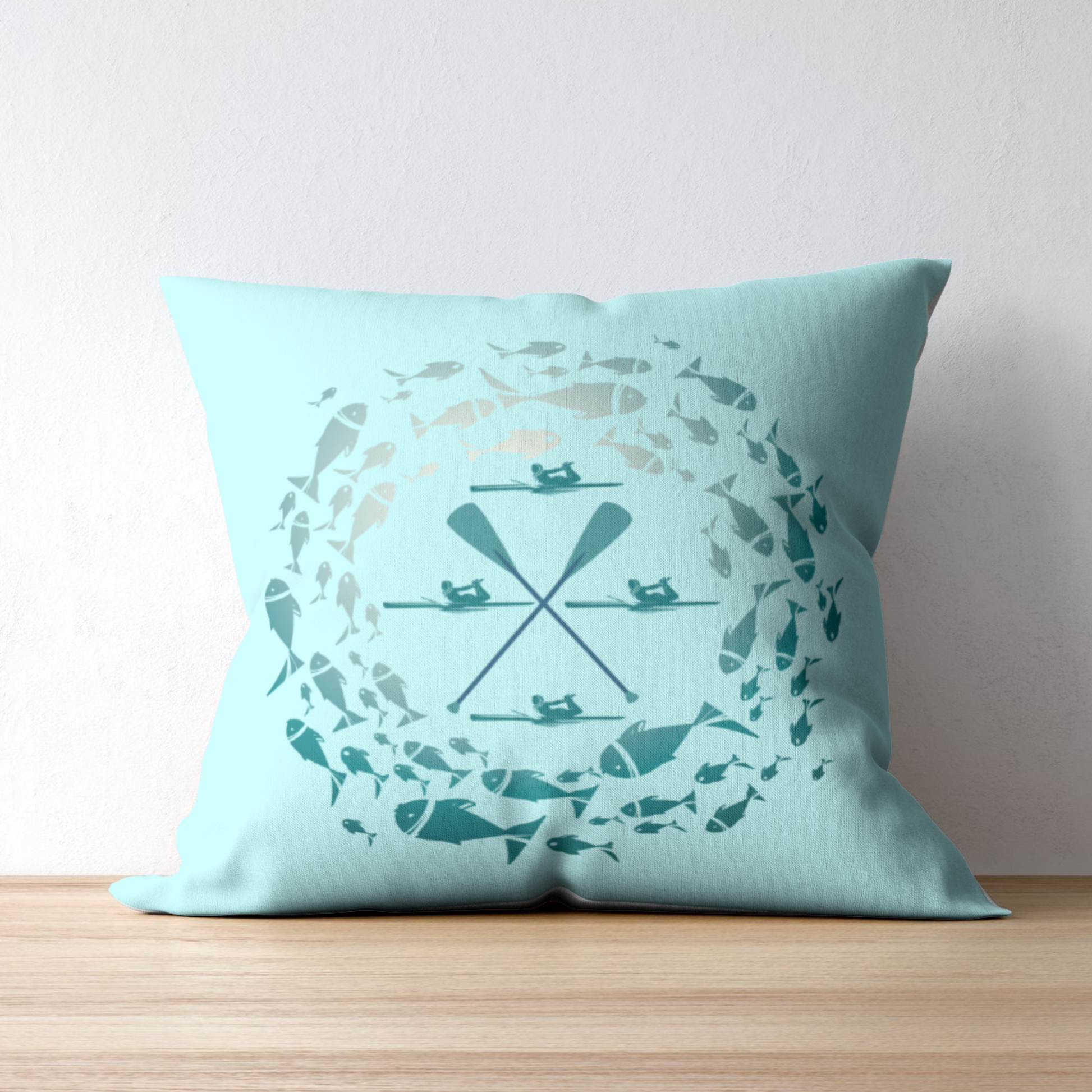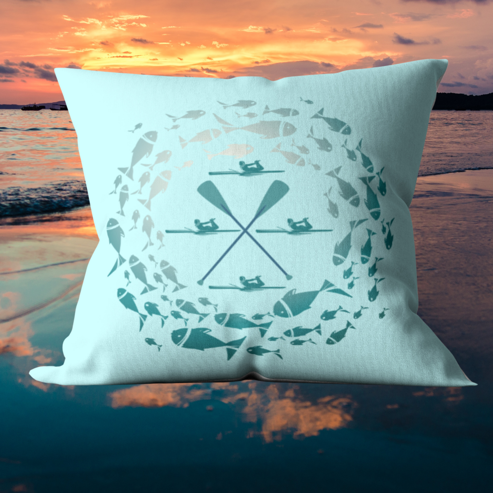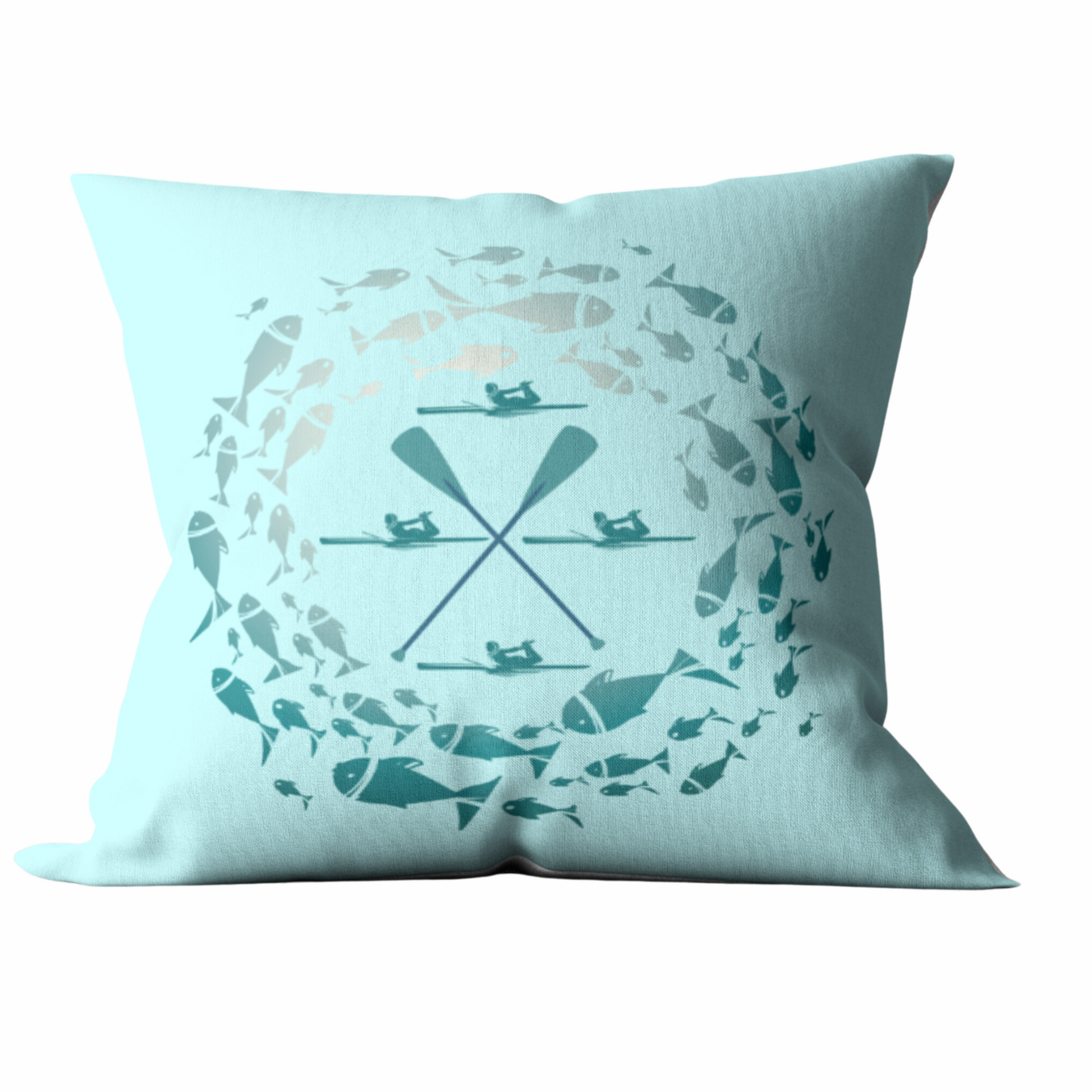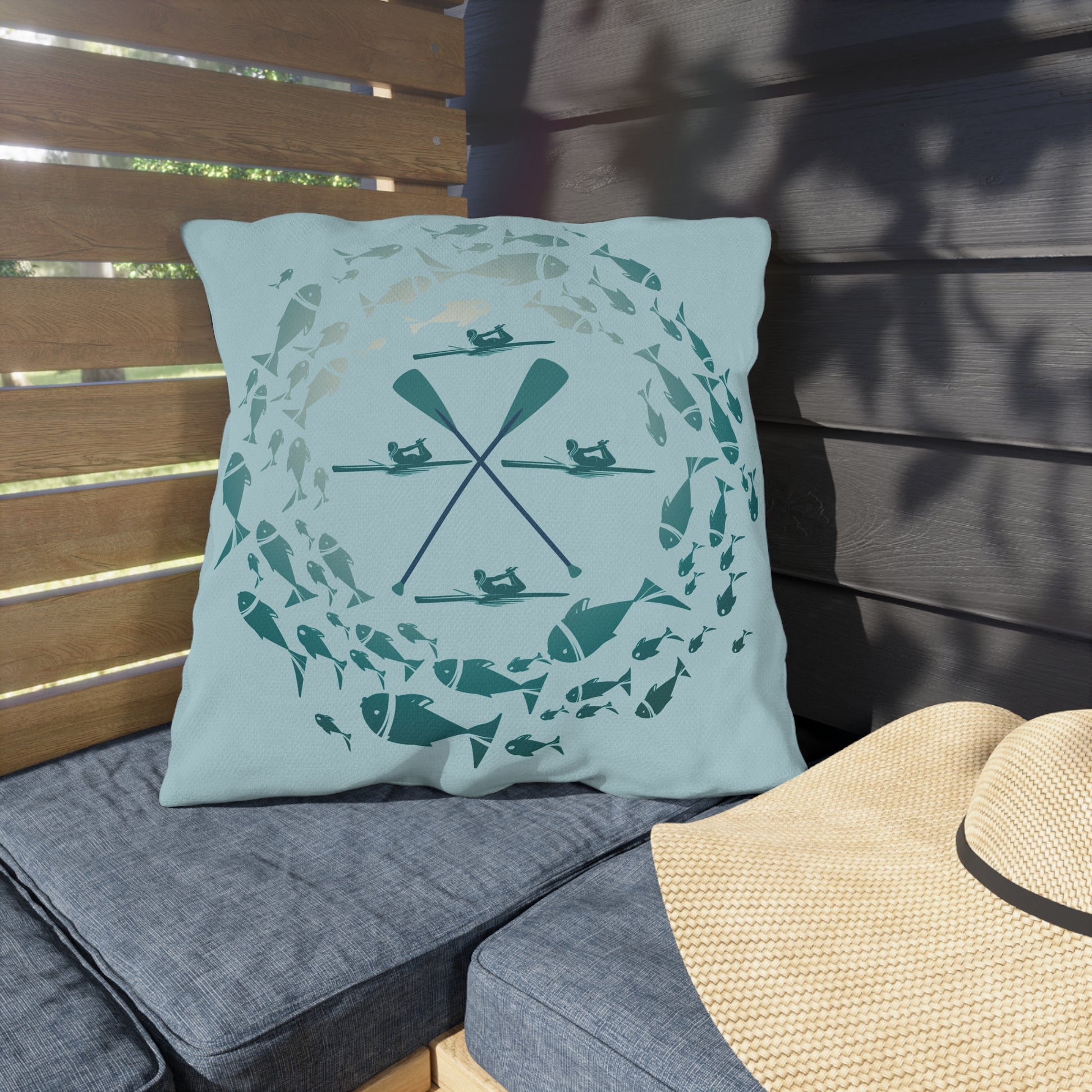 Pastel Blue Fish and Paddle Outdoor Pillows