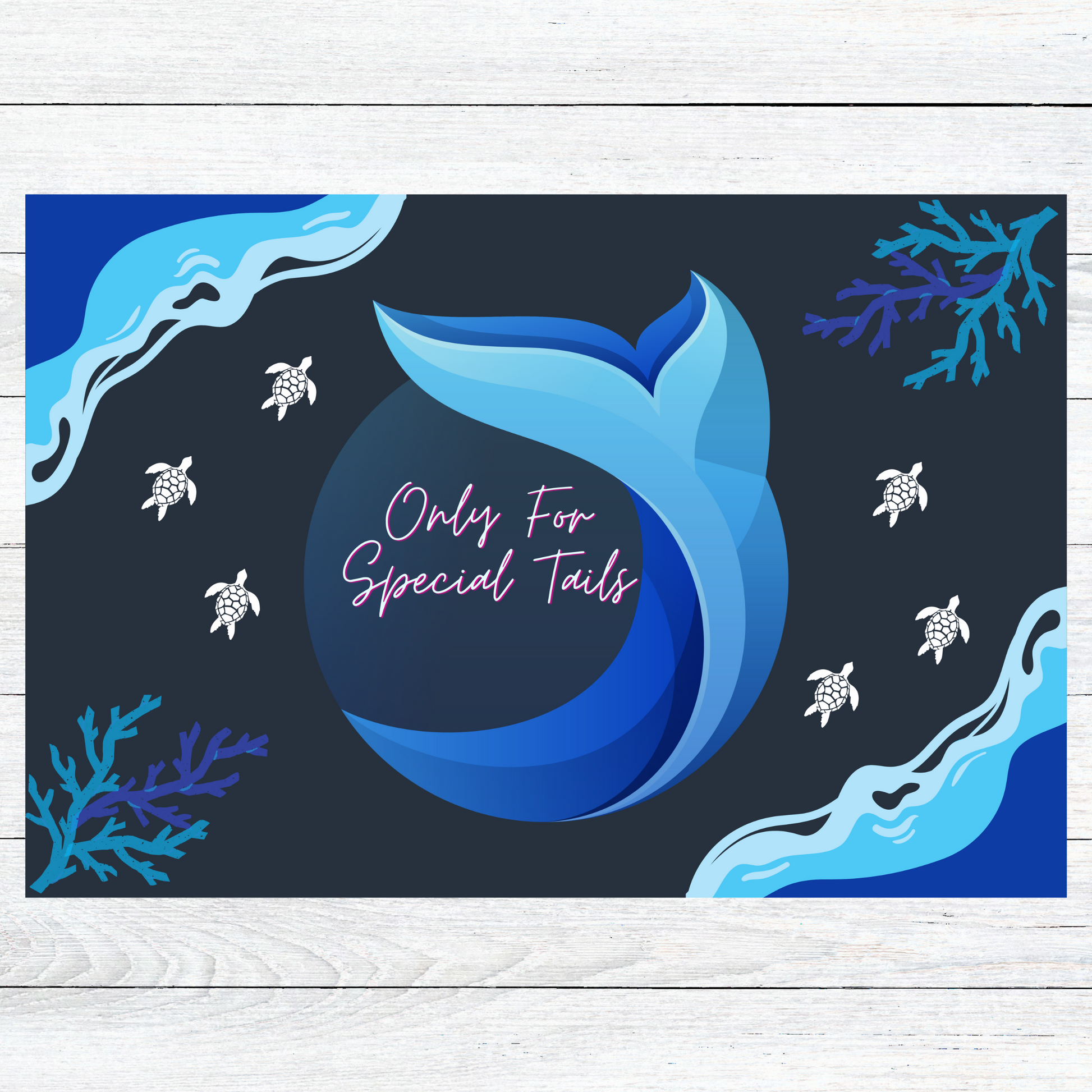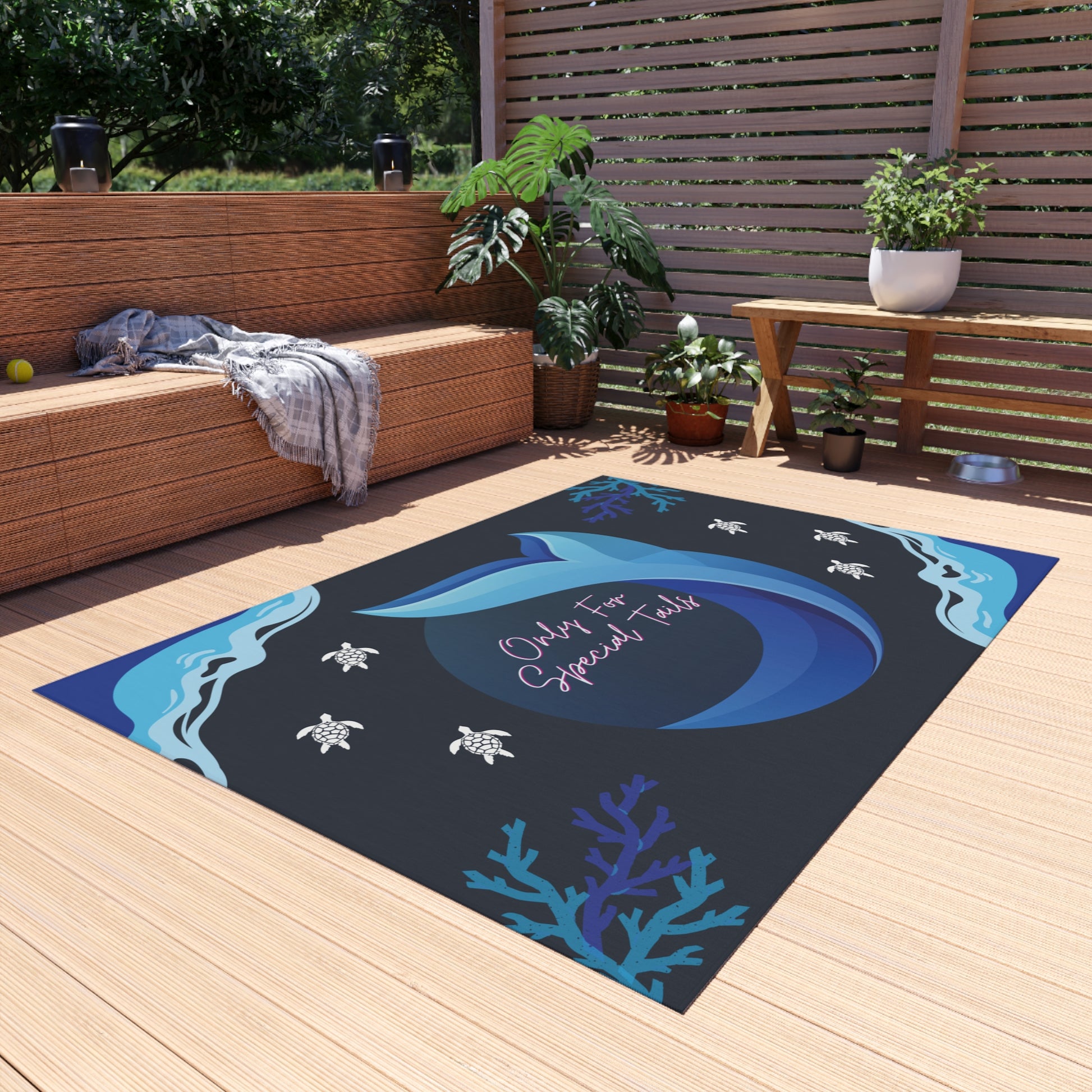 Blue Whale's Tail and Turtles Swimming Around Coral Water and Mildew Resistant Outdoor Rug