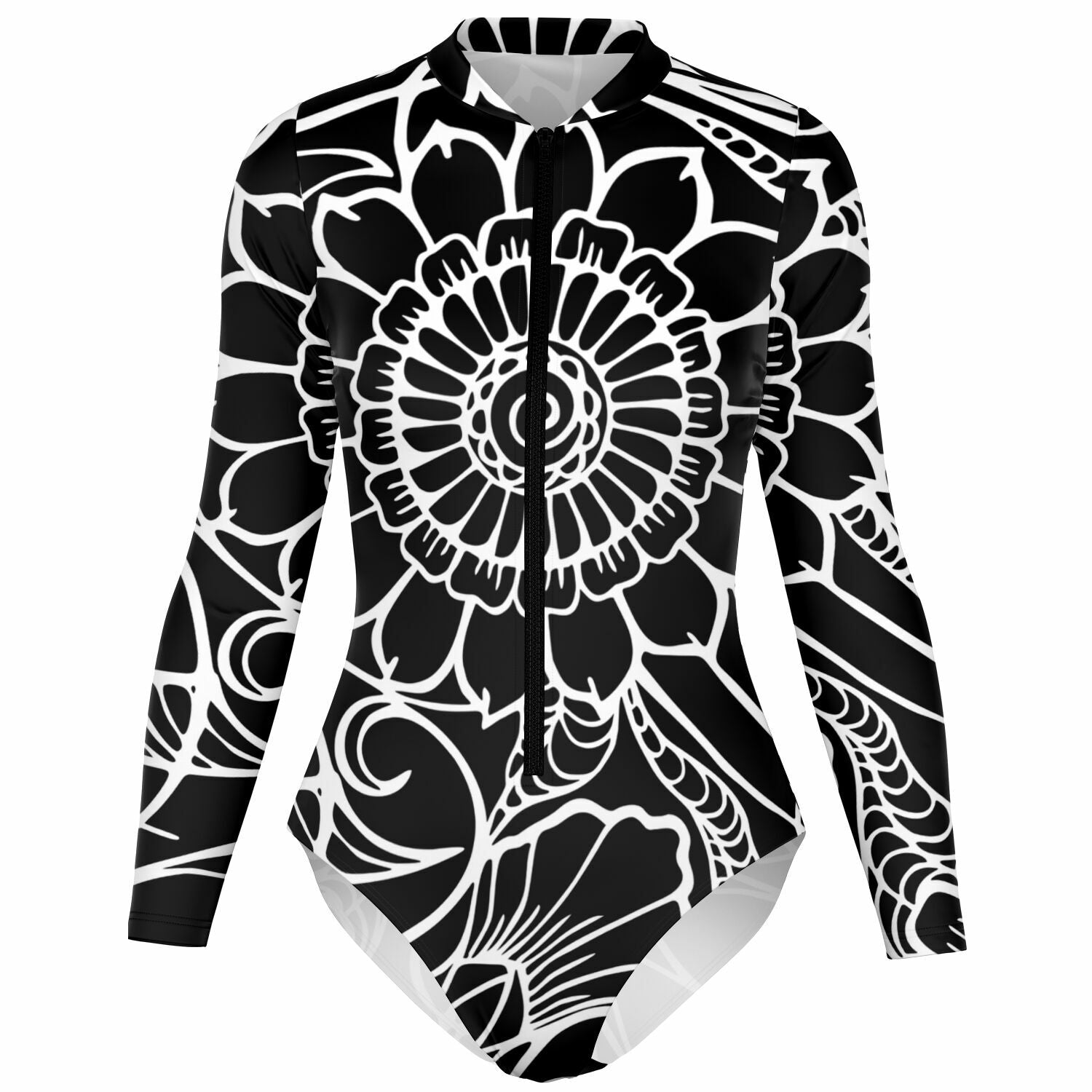 Sophisticated long sleeve body suit in this ageless black and white combo is the absolute masterpiece created for an active woman.