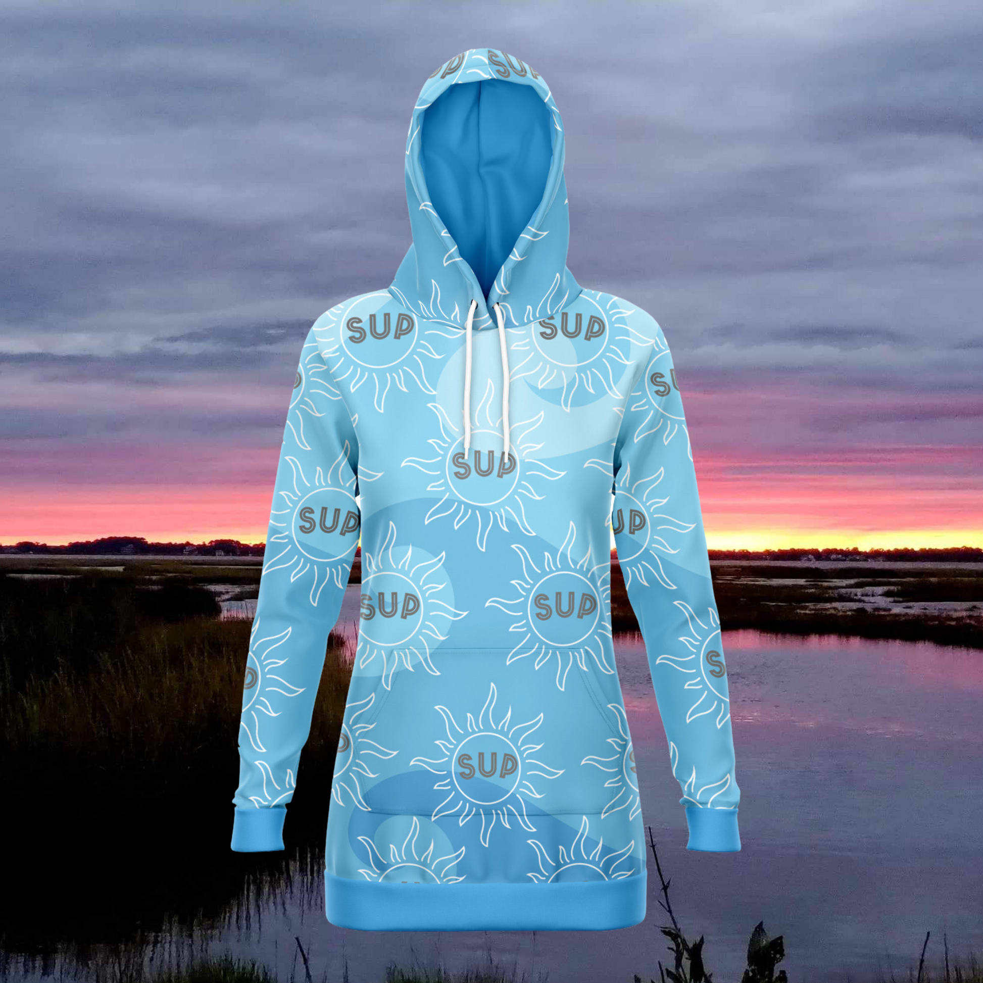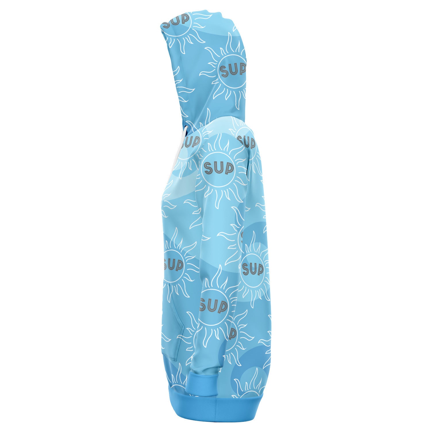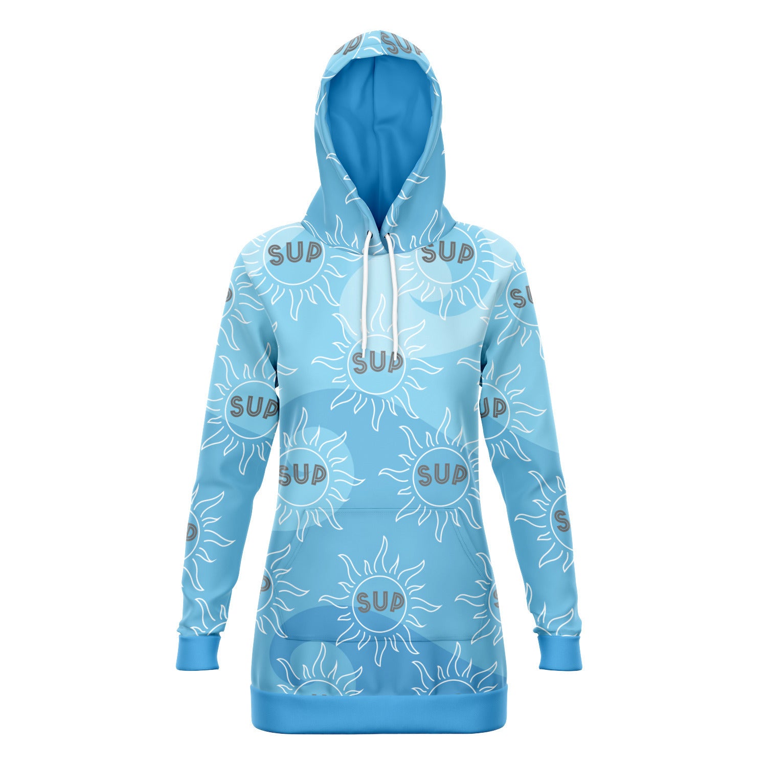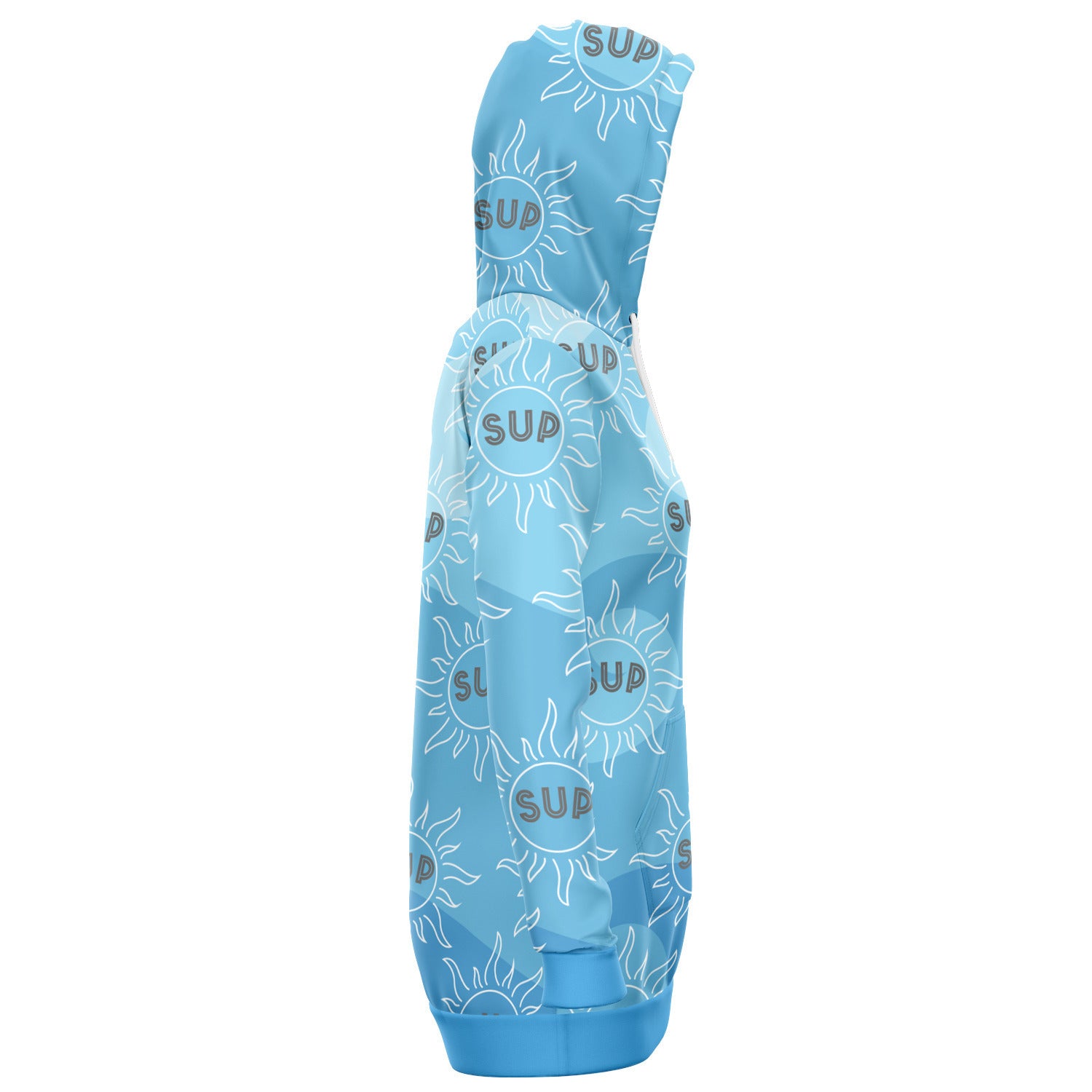 Out of water, off board and little chilly? This longline fitted hoodie with waves, cool sun element and SUP lettering will make you feel extra cozy and looking stylish at the same time. Perfect for beach days, cool evenings, or casual outings, this fitted hoodie offers both comfort and style, making it a must-have for any SUP enthusiast.