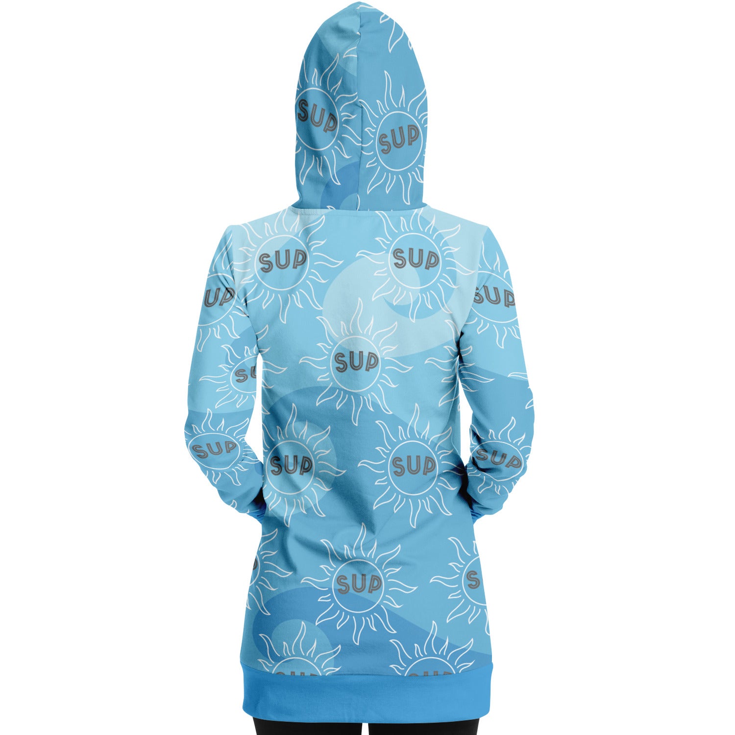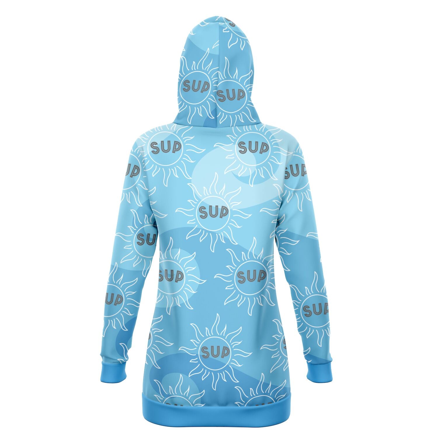 Women's Blue Wave And SUP Print Paddleboarding Longline Athletic Hoodie