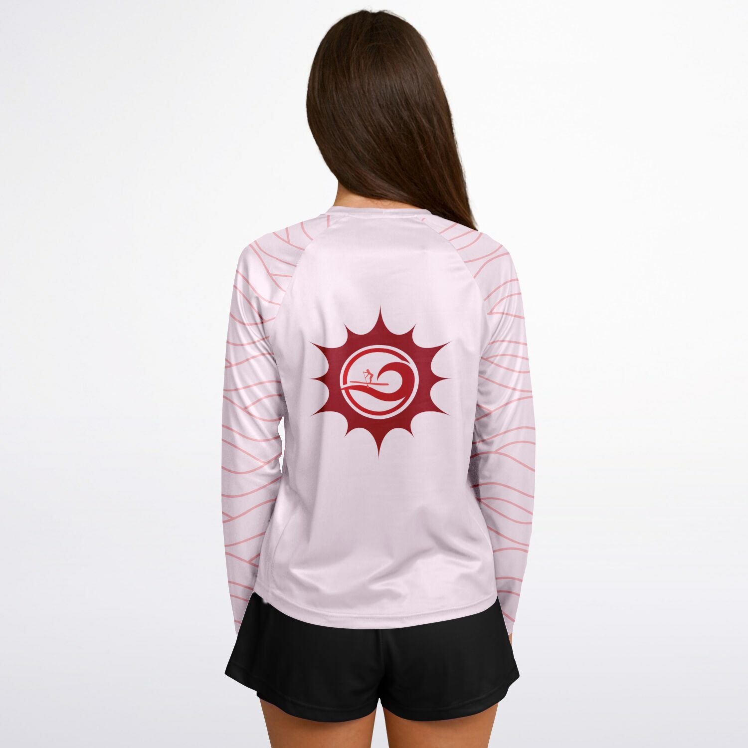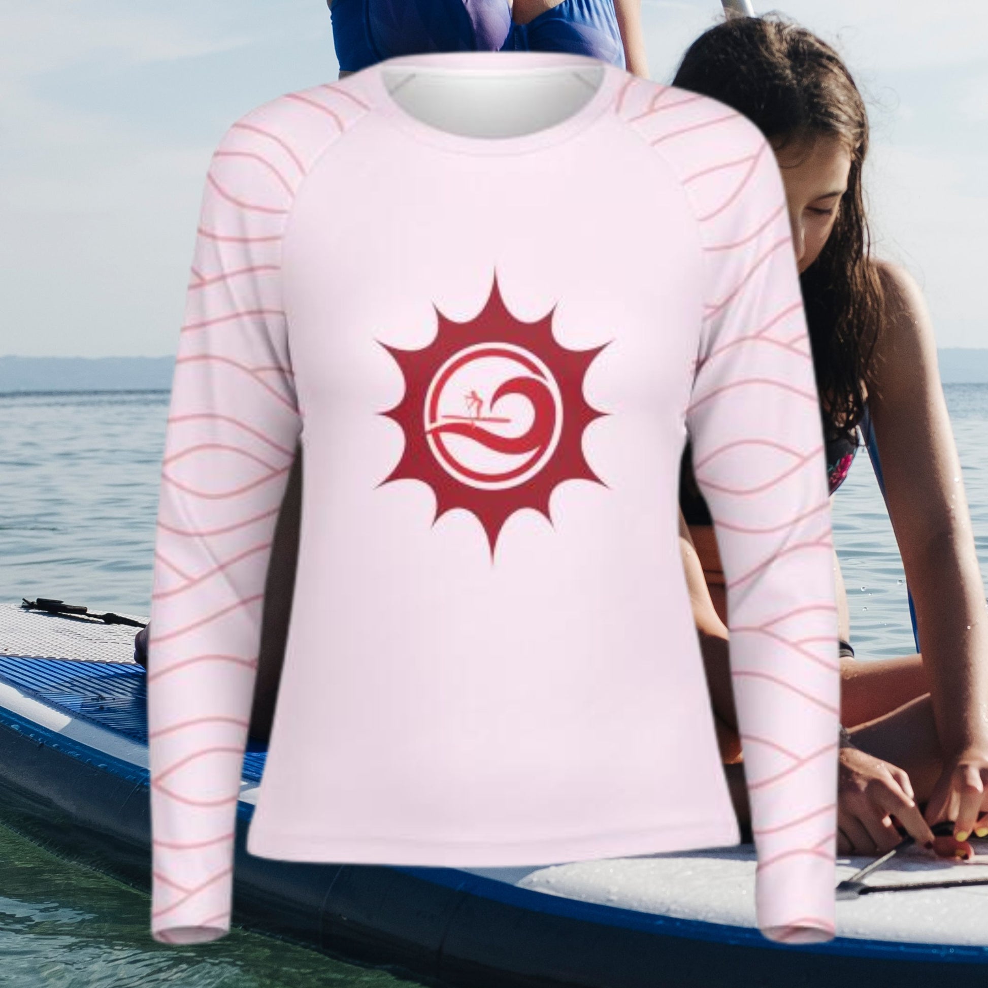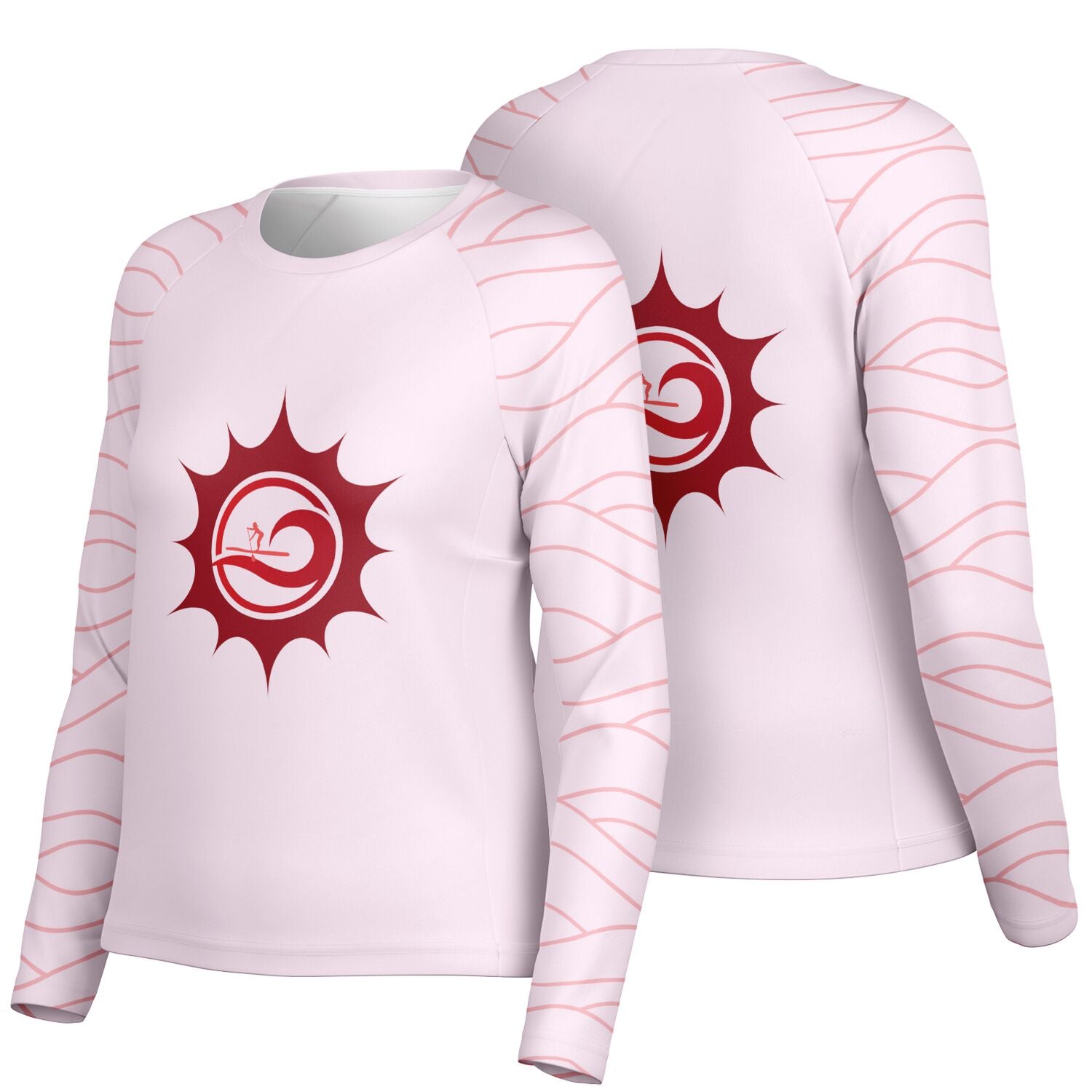 Women's Pink and Red Sun and Paddleboarder Long Sleeve Performance Shirt