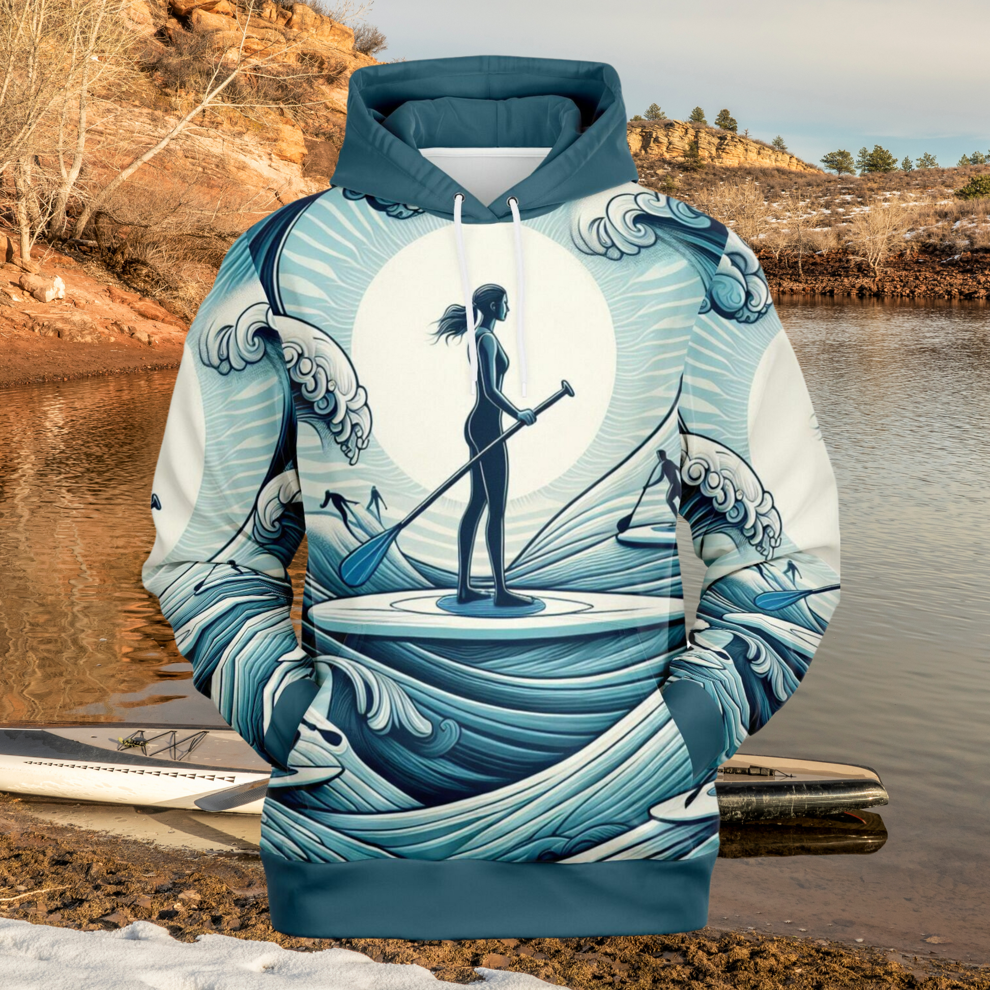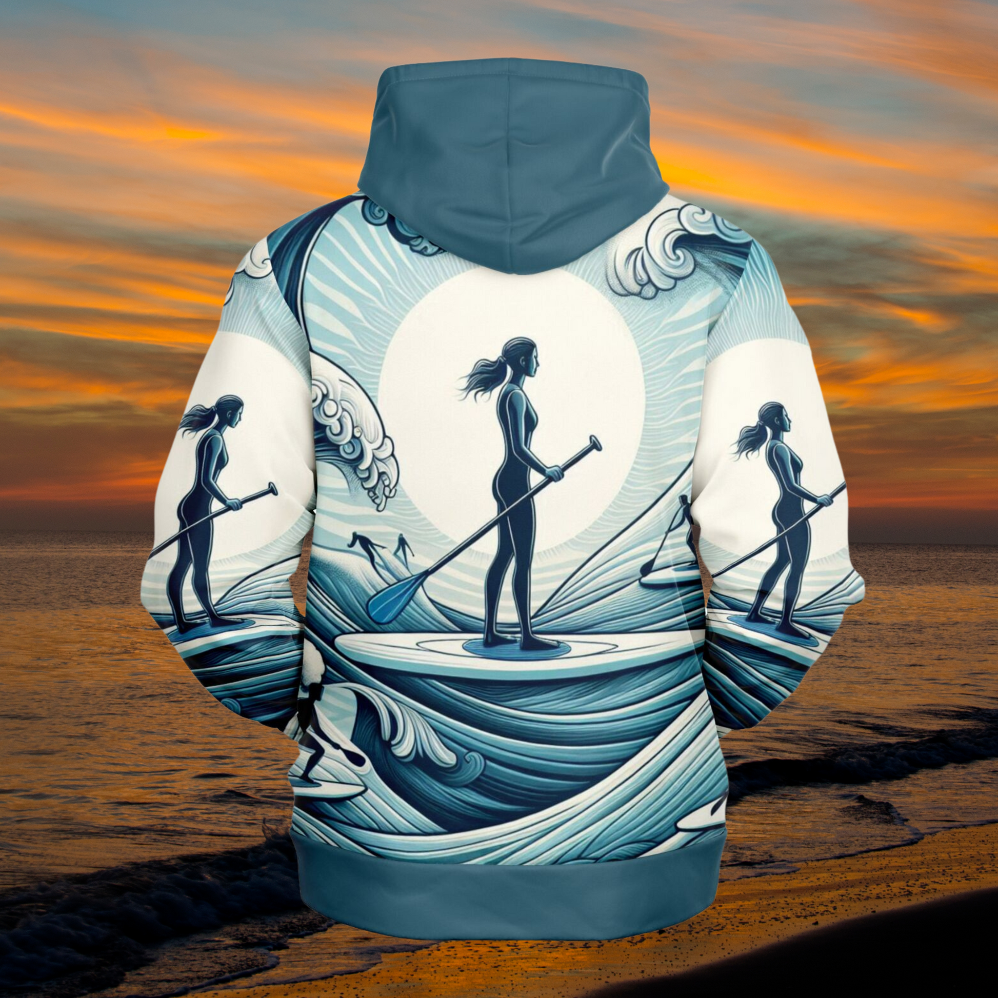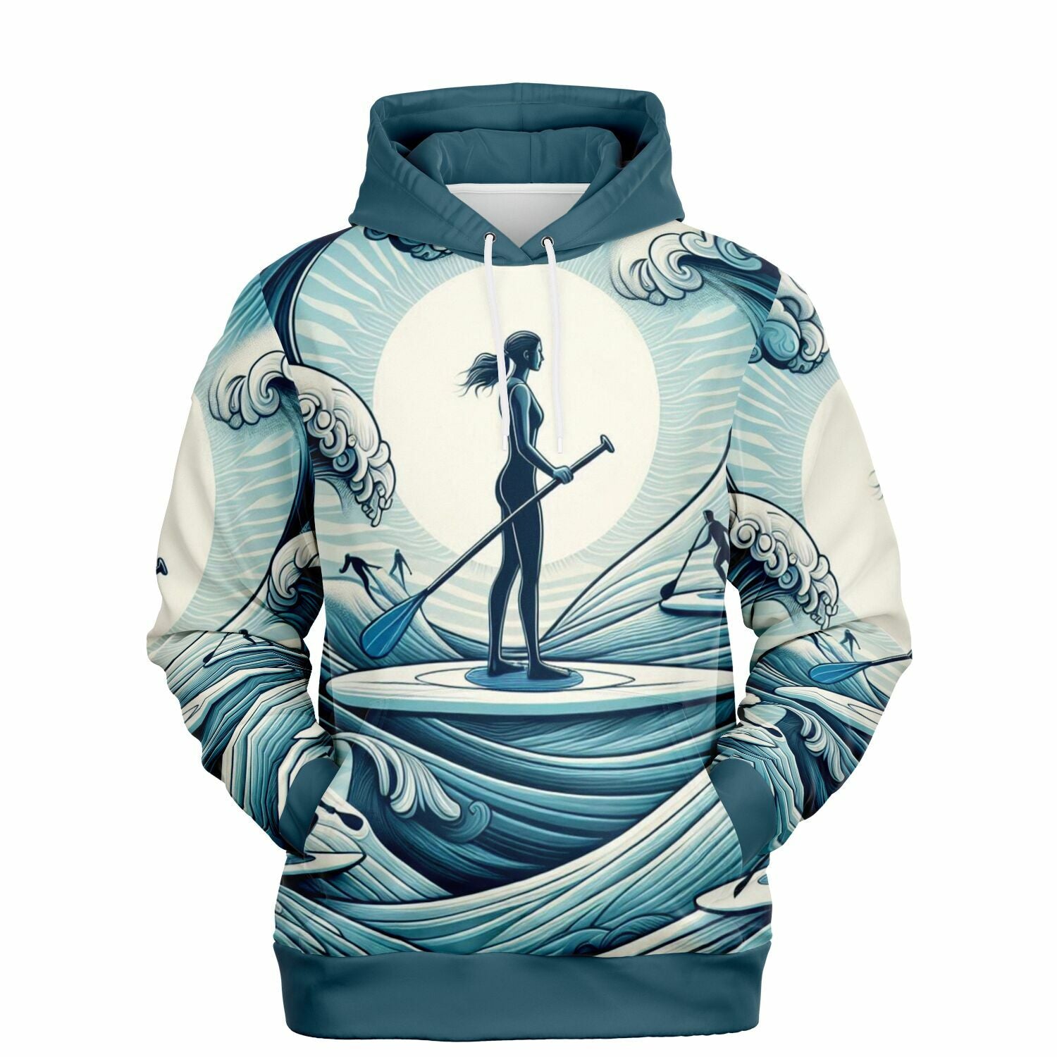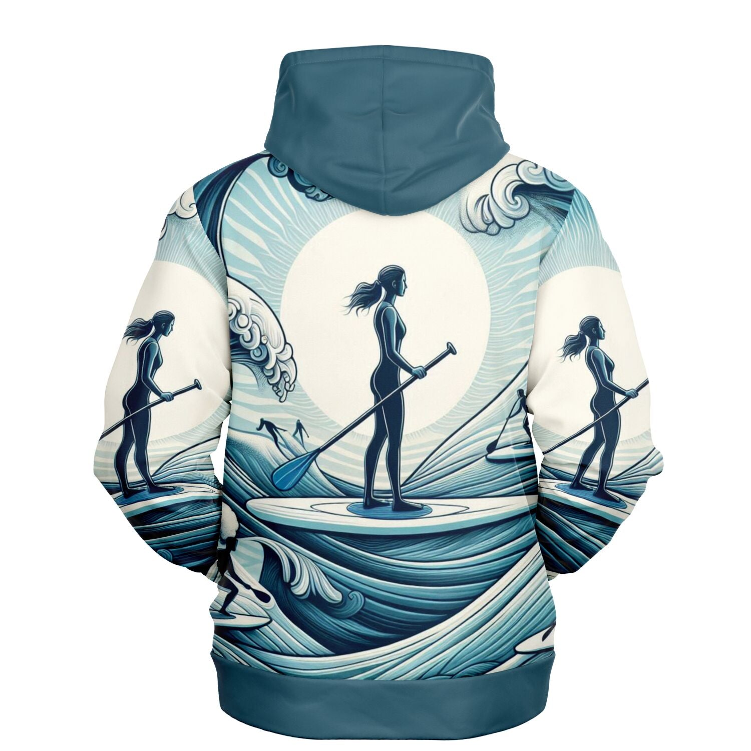 Women's Paddleboarder Athletic Hoodie with Waves Design