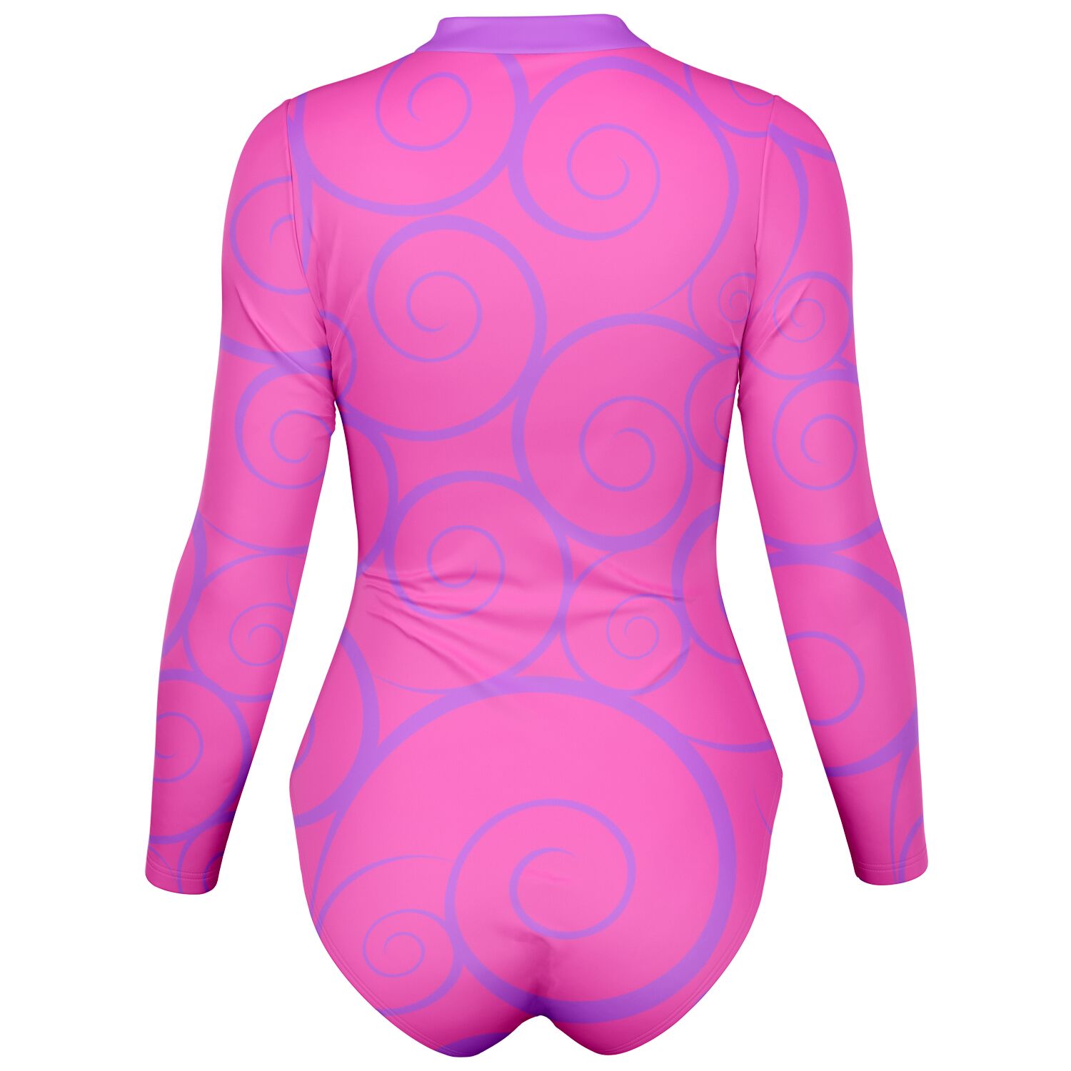 Women's Pink and Purple Bodysuit Long Sleeve One Piece Swimwear