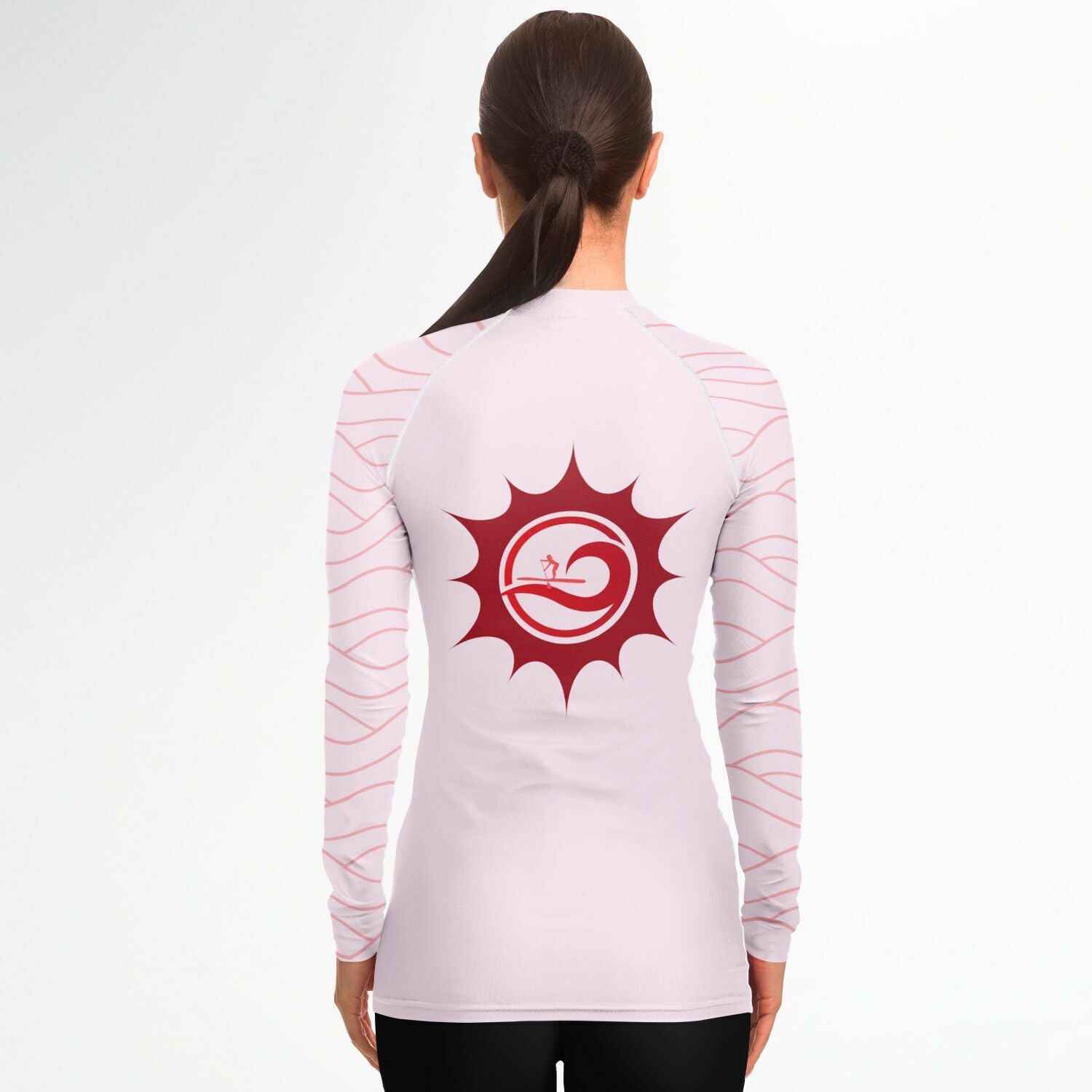 Women's Light Pink and Red Sun and Waves Long Sleeve Rashguard